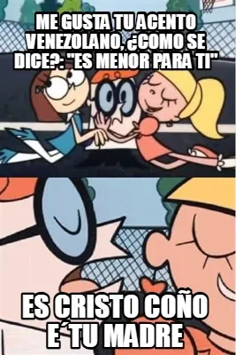 Create Me gusta tu acento venezolano, ¿como se dice?: "es menor para ti" es cristo co� Meme