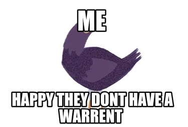 Make your own "Funny ME happy they dont have a warrent" meme with MemeCreator's free online meme generator. Add text, stickers, and drawings — then download or share. No watermark, no sign-up required.