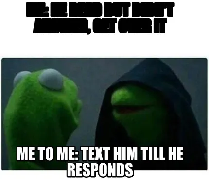 Create Funny me: he read but didn't answer, get over it me to me: text him till he responds Meme