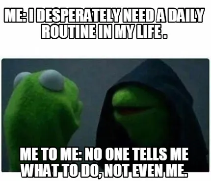 Create Funny Me: I desperately need a daily routine in my life . Me to Me: No one tells me wh Meme