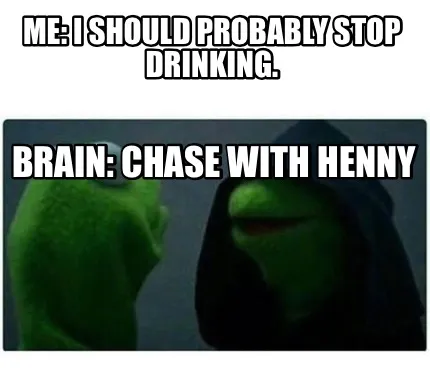 Create Funny Me: I should probably stop drinking. Brain: Chase with Henny Meme