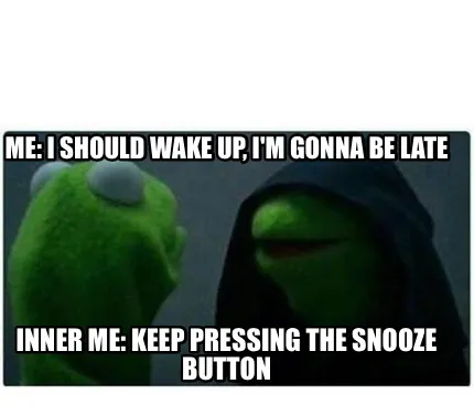 Create Me: I should wake up, I'm gonna be late Inner me: keep pressing the snooze butto Meme