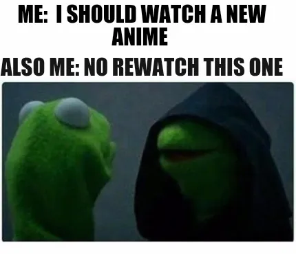 Create Me I Should Watch A New Anime Also Me No Rewatch This One Meme