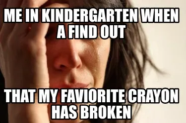 Create Funny me in kindergarten when a find out that my faviorite crayon has broken Meme