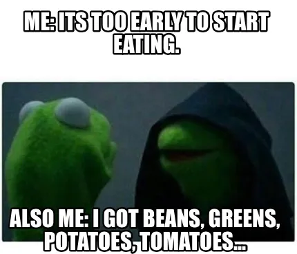 Create Funny Me: Its too early to start eating. Also Me: i got beans, greens, potatoes, tomat Meme
