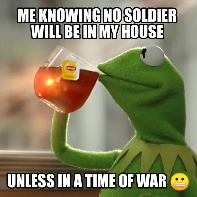Create Funny Me knowing no soldier will be in my house unless in a time of war ???? Meme