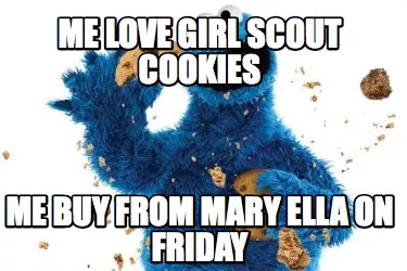 Create Funny Me love Girl Scout Cookies Me buy from Mary Ella on Friday Meme
