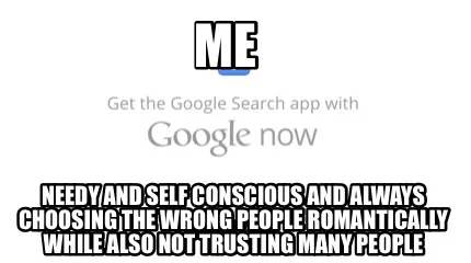 Create Funny Me Needy and self conscious and always choosing the wrong people romantically w Meme