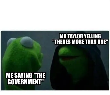 Funny Me Saying "the government" Mr Taylor yelling "theres more than one" Meme Template