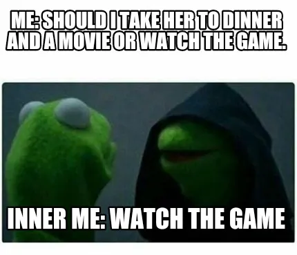 Funny ME: Should I take her to dinner and a movie or watch the game. Inner me: Watch t Meme Template