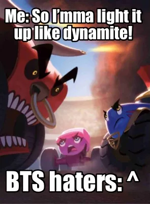 Funny Me: So I’mma light it up like dynamite! BTS haters: ^ Meme Template