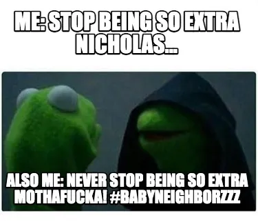 Create Funny Me: Stop being so extra NicholaS... Also me: NEVER STOP BEING SO EXTRA MOTHAFUCK Meme