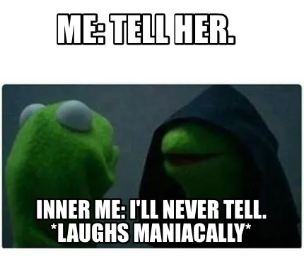 Create Funny Me: Tell her. Inner me: I'll never tell. *laughs maniacally* Meme