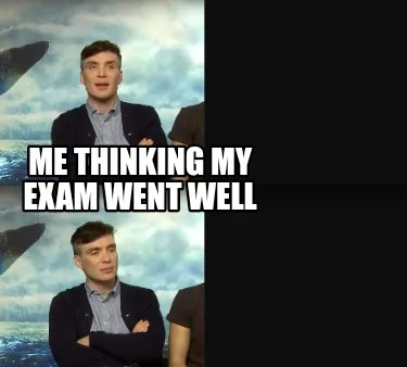 Make your own "Funny Me thinking my exam went well" meme with MemeCreator's free online meme generator. Add text, stickers, and drawings — then download or share. No watermark, no sign-up required.