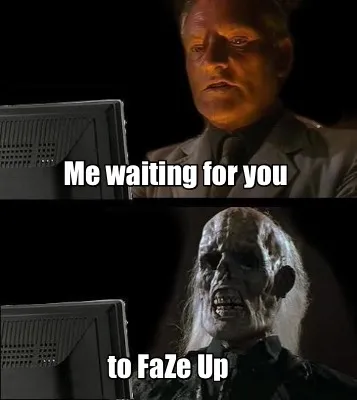 Make your own "Funny Me waiting for you to FaZe Up" meme with MemeCreator's free online meme generator. Add text, stickers, and drawings — then download or share. No watermark, no sign-up required.