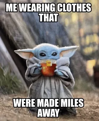 Make your own "Me wearing clothes that were made miles away" meme with MemeCreator's free online meme generator. Add text, stickers, and drawings — then download or share. No watermark, no sign-up required.