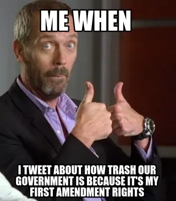 Create ME when I tweet about how trash our government is because it's my first amendmen Meme
