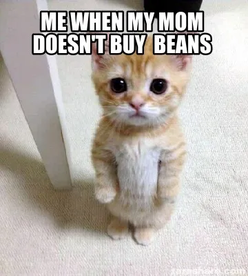 Make your own "Me when my mom doesn't buy beans" meme with MemeCreator's free online meme generator. Add text, stickers, and drawings — then download or share. No watermark, no sign-up required.