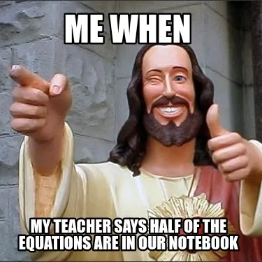 Create Me when my teacher says half of the equations are in our notebook Meme