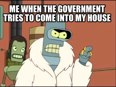 Make your own "Me when the government tries to come into my house" meme with MemeCreator's free online meme generator. Add text, stickers, and drawings — then download or share. No watermark, no sign-up required.