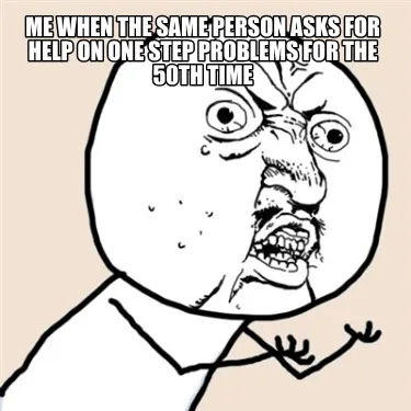Create Me when the same person asks for help on one step problems for the 50th time Meme
