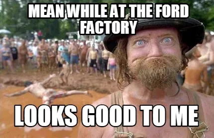 Make your own "Mean While At the Ford Factory looks good to me" meme with MemeCreator's free online meme generator. Add text, stickers, and drawings — then download or share. No watermark, no sign-up required.