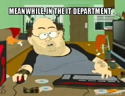 Create MEANWHILE, IN THE IT DEPARTMENT Meme