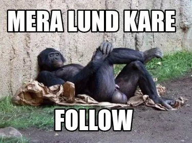 Make your own "Mera lund kare Follow" meme with MemeCreator's free online meme generator. Add text, stickers, and drawings — then download or share. No watermark, no sign-up required.