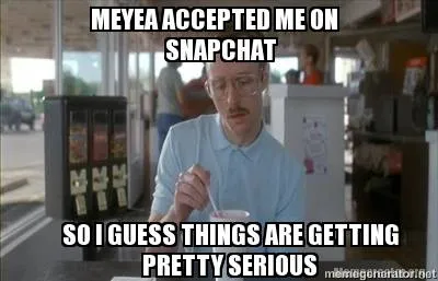 MEYEA ACCEPTED ME ON SNAPCHAT SO I GUESS THINGS ARE GETTING PRETTY SERIOUS Meme Template