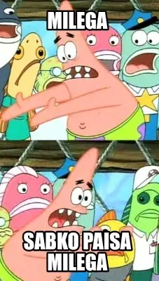 Make your own "Milega Sabko paisa milega" meme with MemeCreator's free online meme generator. Add text, stickers, and drawings — then download or share. No watermark, no sign-up required.