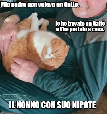 Make your own "Mio padre non voleva un Gatto. Io ho trovato un Gatto e l'ho portato a casa. il" meme with MemeCreator's free online meme generator. Add text, stickers, and drawings — then download or share. No watermark, no sign-up required.