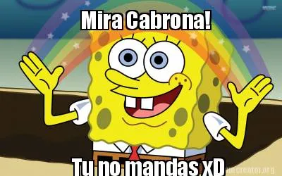 Make your own "Mira Cabrona! Tu no mandas xD" meme with MemeCreator's free online meme generator. Add text, stickers, and drawings — then download or share. No watermark, no sign-up required.