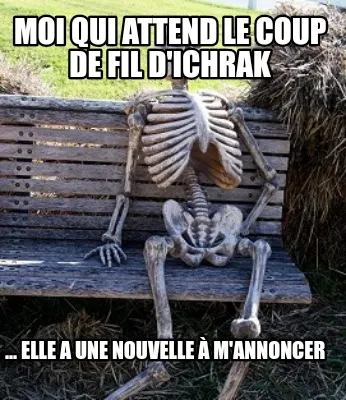 Make your own "Funny Moi qui attend le coup de fil d'Ichrak ... elle a une nouvelle à m'annoncer" meme with MemeCreator's free online meme generator. Add text, stickers, and drawings — then download or share. No watermark, no sign-up required.