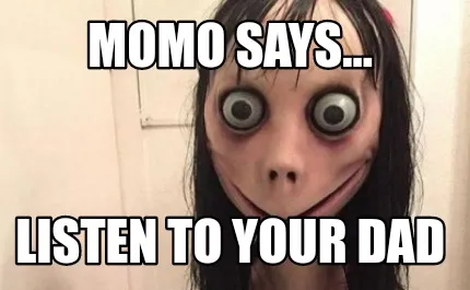 Make your own "Funny Momo says... Listen to your dad" meme with MemeCreator's free online meme generator. Add text, stickers, and drawings — then download or share. No watermark, no sign-up required.