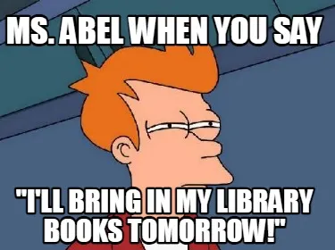 Create Ms. Abel when you say "I'll bring in my library books tomorrow!" Meme