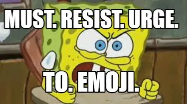 Make your own "Must. resist. urge. to. emoji." meme with MemeCreator's free online meme generator. Add text, stickers, and drawings — then download or share. No watermark, no sign-up required.