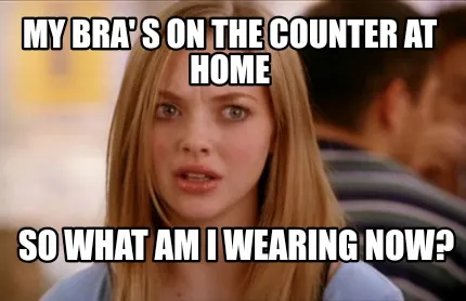 My bra' s on the counter at home So what am I wearing now? Meme Template