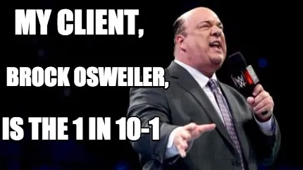 Make your own "My client, is the 1 in 10-1 Brock Osweiler," meme with MemeCreator's free online meme generator. Add text, stickers, and drawings — then download or share. No watermark, no sign-up required.