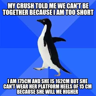 Create My crush told me we can't be together because I am too short I AM 175CM AND SHE Meme
