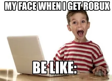 Make your own "My face when i get robux be like:" meme with MemeCreator's free online meme generator. Add text, stickers, and drawings — then download or share. No watermark, no sign-up required.