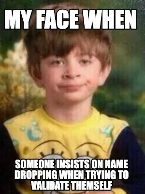 Create My face when someone insists on name dropping when trying to validate themself Meme