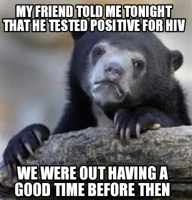 Create My friend told me tonight that he tested positive for HIV We were out having a g Meme