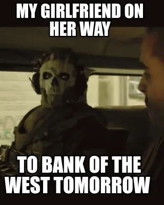 Create Funny My girlfriend on her way To bank of the west tomorrow Meme
