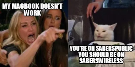 My macbook doesn't work You're on saberspublic you should be on saberswireless Meme Template