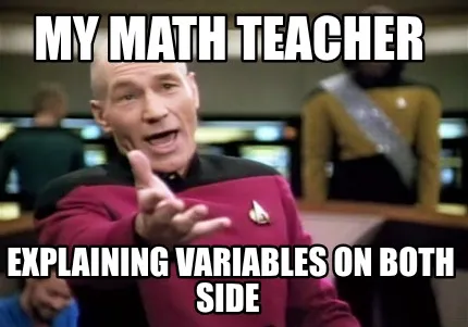 Make your own "My math teacher explaining Variables on both side" meme with MemeCreator's free online meme generator. Add text, stickers, and drawings — then download or share. No watermark, no sign-up required.