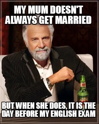 My mum doesn't always get married But when she does, it is the day before my eng Meme Template