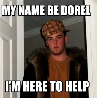 Make your own "My name be Dorel I’m here to help" meme with MemeCreator's free online meme generator. Add text, stickers, and drawings — then download or share. No watermark, no sign-up required.