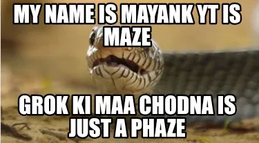 Create My name is mayank yt is maze Grok ki maa chodna is just a phaze Meme