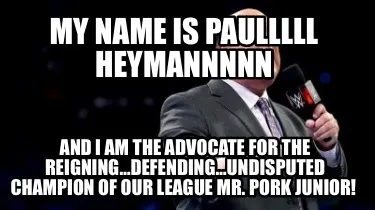 Funny My Name Is Paulllll Heymannnnn And I am the advocate for the REIGNING…DEFENDIN Meme Template