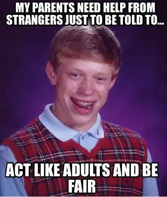 Create My parents need help from strangers just to be told to… ACT LIKE ADULTS AND BE Meme